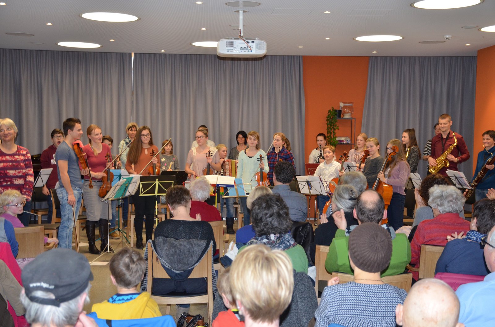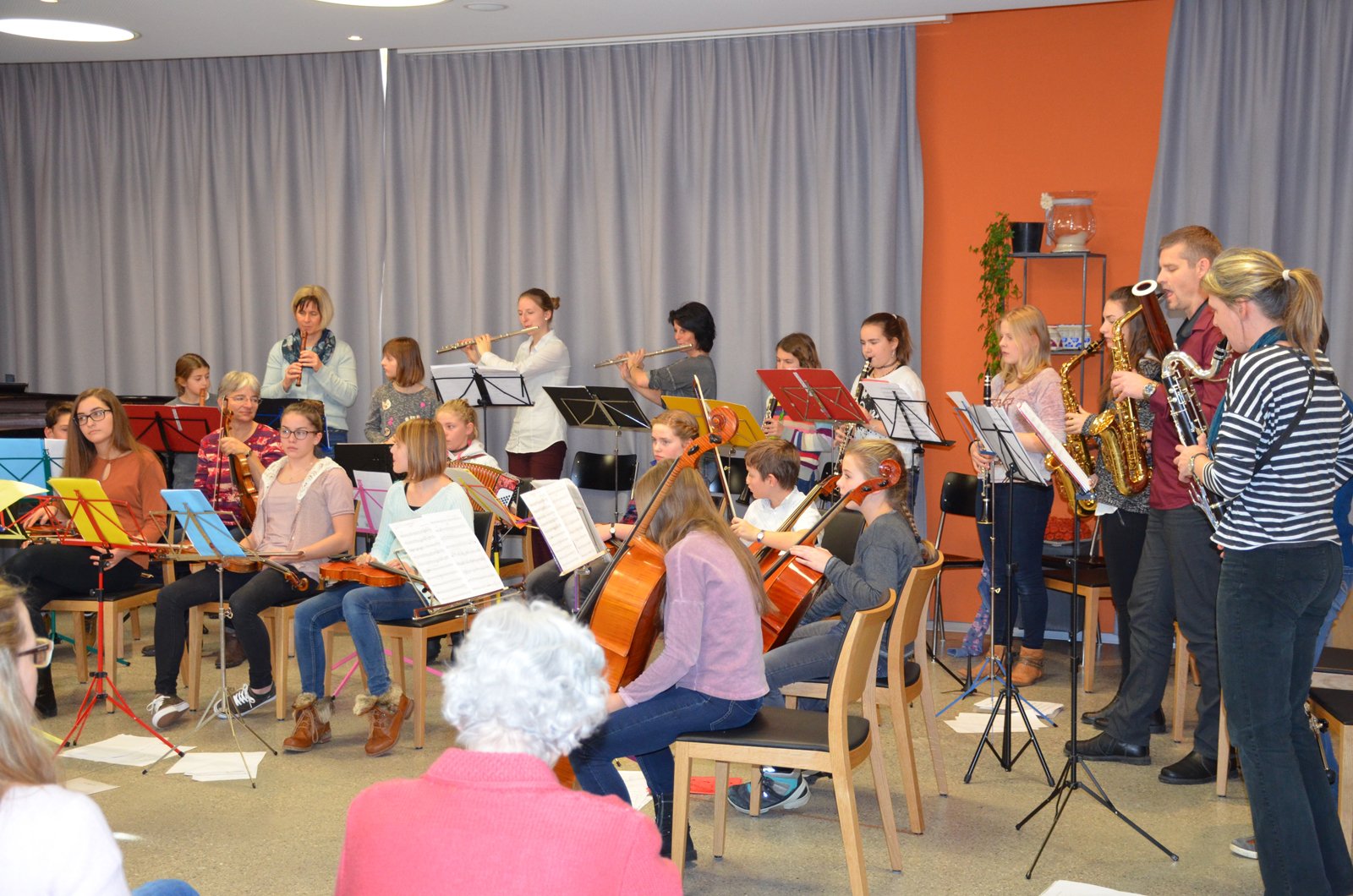 Das gemischte Ensemble der Musikschule unteres Simmental Kandertal besteht aus 25 Jugendlichen und Erwachsenen, die in verschiedenen Besetzungen proben. Dabei entsteht jeweils ein Programm, das
